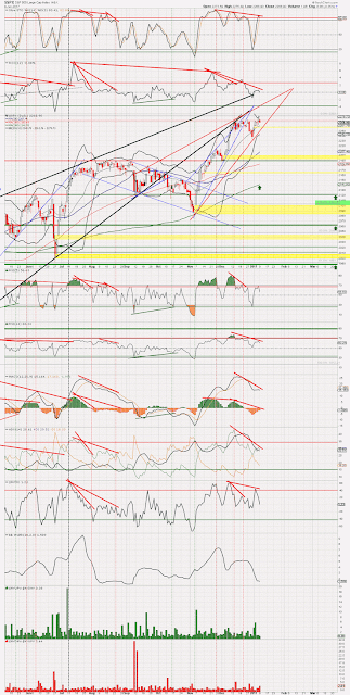 SPX Daily - Patterns ending (time and time again), BB's narrowing, negative divergences growing and 2300 or 22k just out of reach.