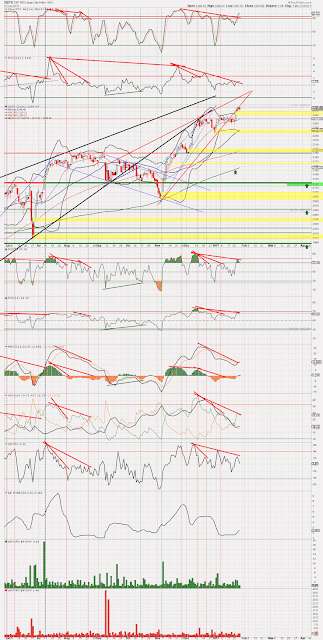 SPX Daily - closer look than above - chart I've been showing for a while now. Nothing is good here technically and the bust above the very narrow upper BB, well that's way out of the norm. Price is now taking 'breaking all the rules' to even higher heights.